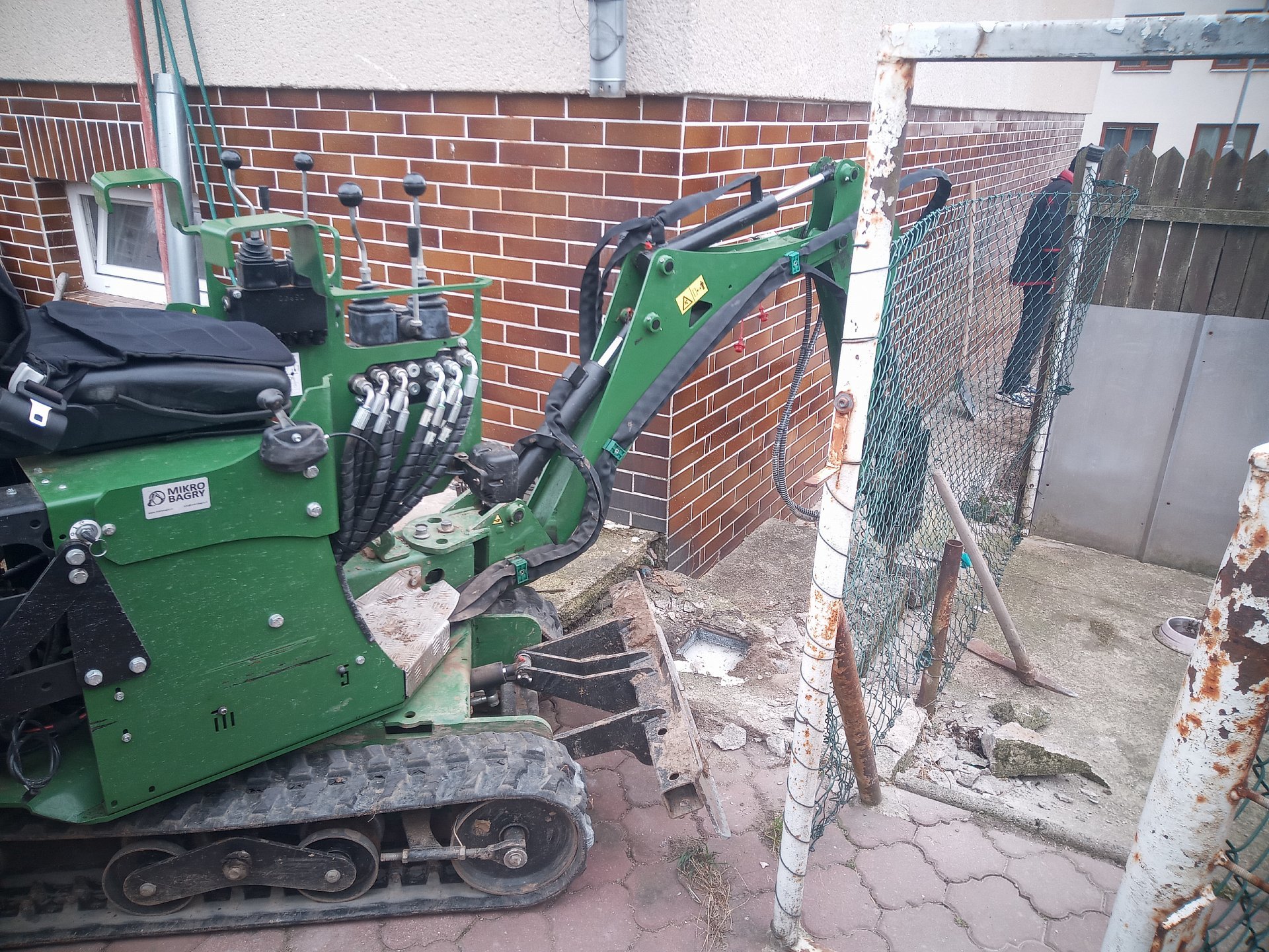 V Dukovanech bylo potřeba dostat se chvílemi do stísněných prostor. Technika naší firmy je na to ideální. Podařilo se nám rozbourat chodník u rodinného domu a opravit izolaci podle potřeb zákazníka. Do práce se s chutí pustil mikrobagr - MPT 82-1500 Sphinx.